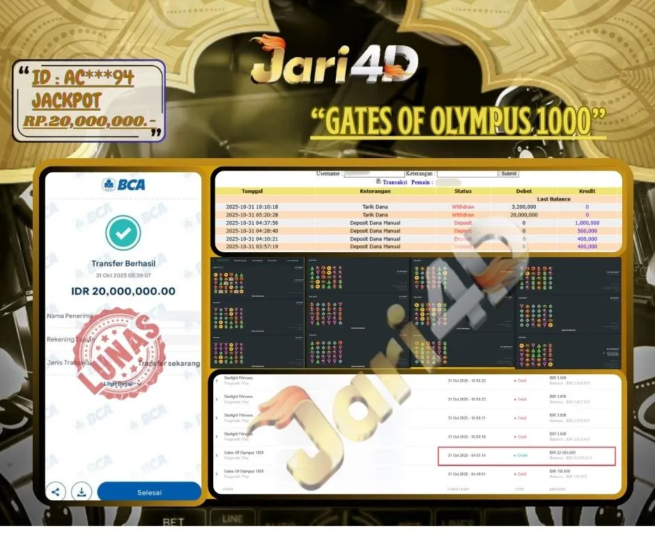 Bukti JP GATES OF OLYMPUS 100 Hari ini Di Situs JARI4D Sebesar Rp.20,000,000,- Tuntas !! Read More »