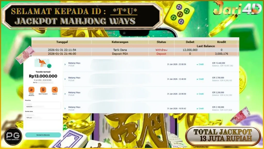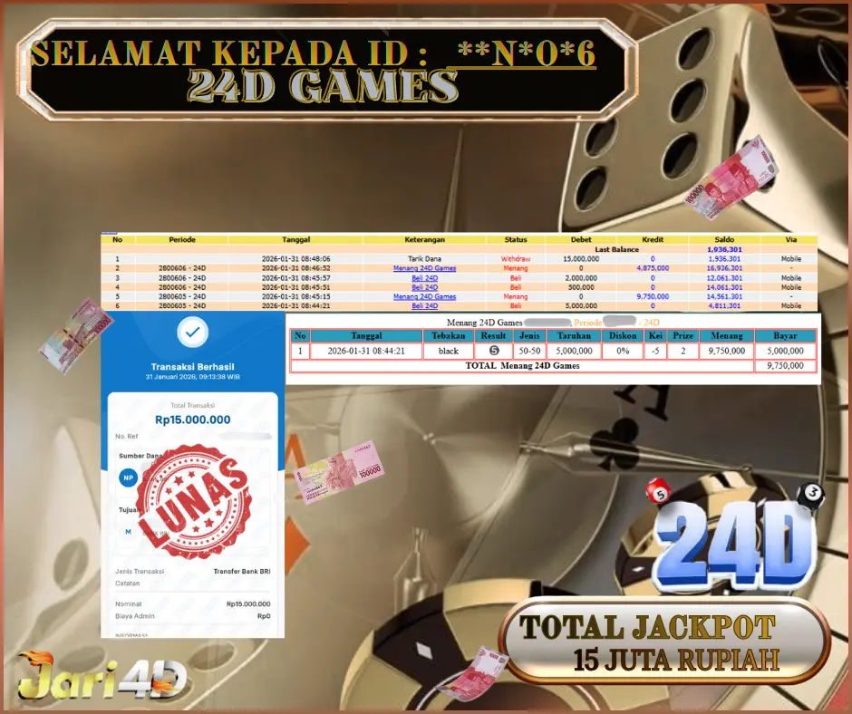 Bukti Withdraw Kemenangan Jackpot Di Situs Jari4D Jari4d Merupakan Situs Judi Online Togel , Slot , Livecasino Resmi Paling Terpercaya Sepanjang Tahun Sampai Saat Ini 2026. Jari4D Juga Merupakan Situs Online Dengan Licensi Kemenangan Jackpot Berapapun Pasti Di Bayar Tuntas !!! Tanpa Sedikit-Pun Basa Basi Dari Pihak Web Dan Management Withdraw Jari4D. Kemenangan Berapapun […]