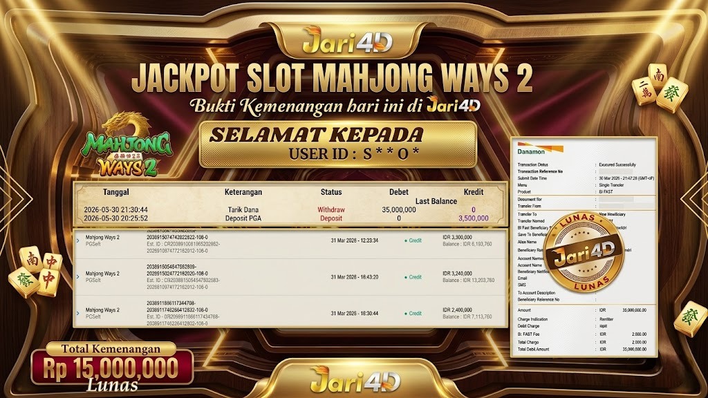 Bukti Withdraw Kemenangan Jackpot Di Situs Jari4D Jari4d Merupakan Situs Judi Online Togel , Slot , Livecasino Resmi Paling Terpercaya Sepanjang Tahun Sampai Saat Ini 2026. Jari4D Juga Merupakan Situs Online Dengan Licensi Kemenangan Jackpot Berapapun Pasti Di Bayar Tuntas !!! Tanpa Sedikit-Pun Basaa Basi Dari Pihak Web Dan Management Withdraw Jari4D. Kemenangan Berapapun […]