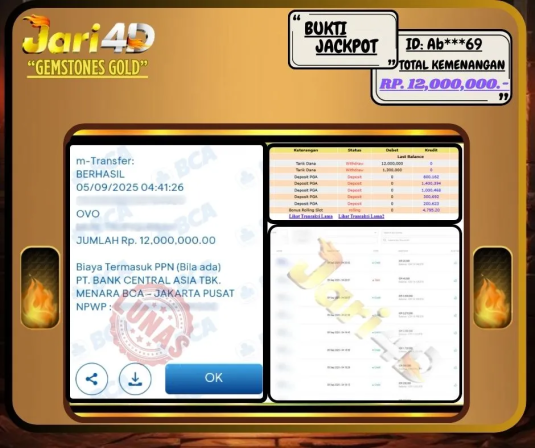 Bukti JP GEMSTONES GOLD Hari ini Di Situs JARI4D Sebesar Rp.12,000,000,- Tuntas !!