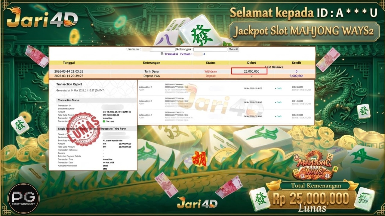 Bukti JP MAHJONG WAYS 2 Hari ini Di Situs JARI4D Sebesar Rp. 25,000,000,- Tuntas !!