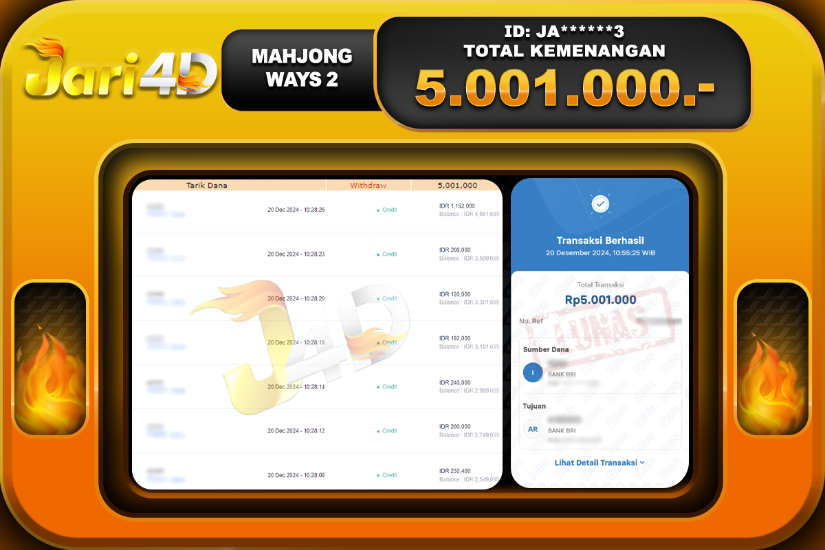 Bukti JP MAHJONG WAYS 2 Hari ini Di Situs JARI4D Sebesar Rp.5.001.000,- Tuntas !!