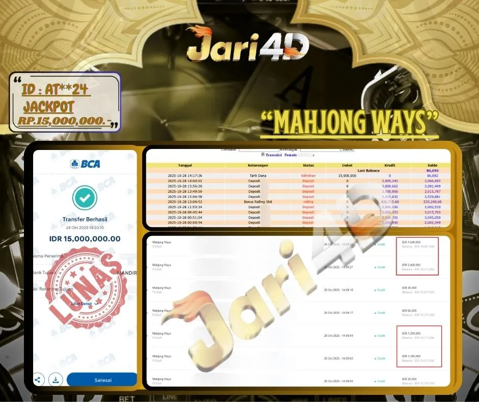 Bukti JP MAHJONG WAYS Hari ini Di Situs JARI4D Sebesar Rp.15,000,000,- Tuntas !!