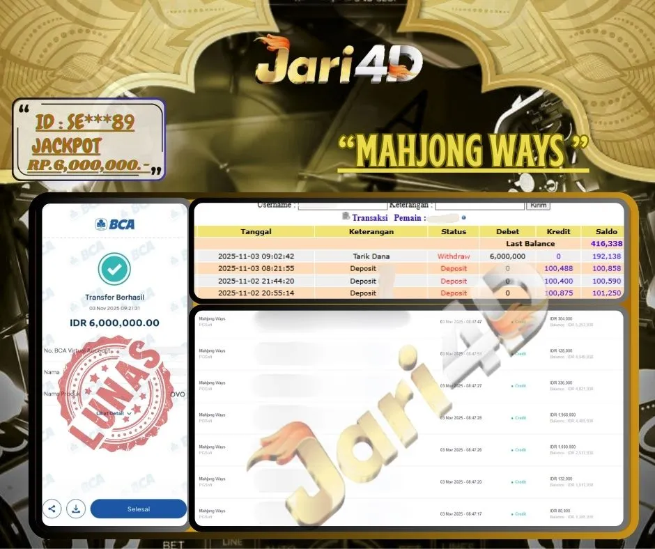 Bukti JP MAHJONG WAYS Hari ini Di Situs JARI4D Sebesar Rp.6,000,000,- Tuntas !!