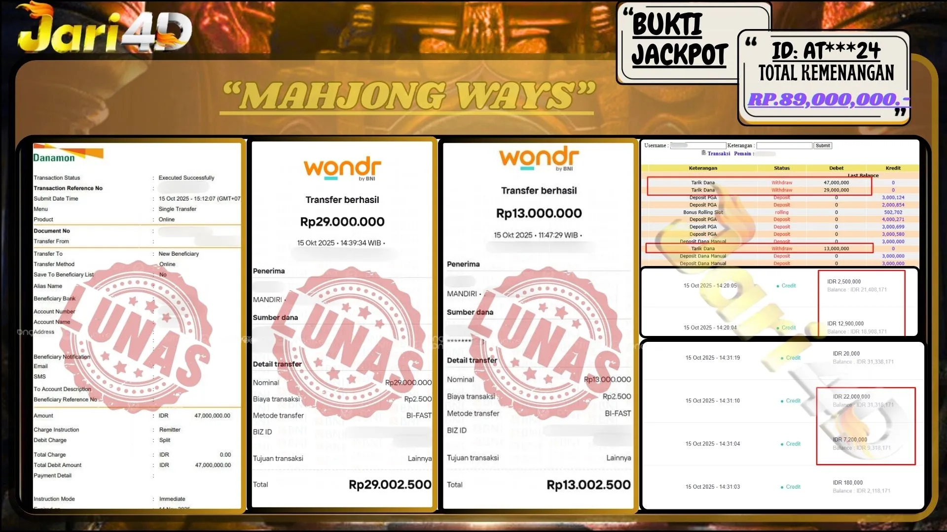 Bukti JP MAHJONG WAYS Hari ini Di Situs JARI4D Sebesar Rp.89,000,000,- Tuntas !!