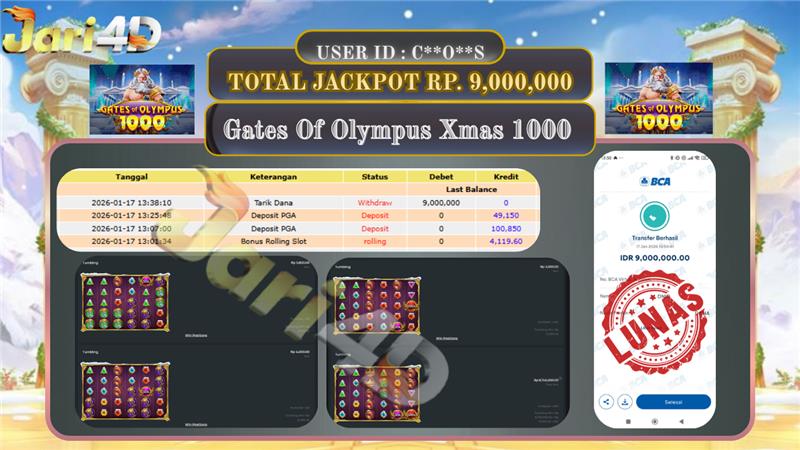 BUKTI WITHDRAW JARI4D KEMENANGAN JACKPOT GATES OF OLYMPUS XMAS Rp.9.000.000,- LUNAS