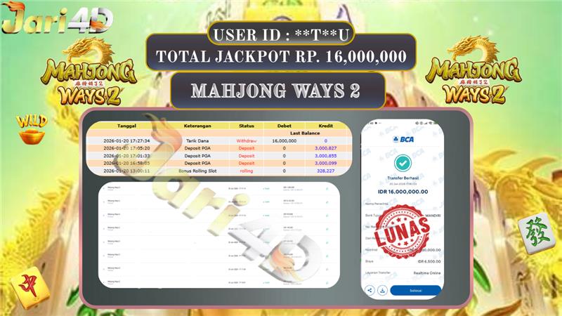 BUKTI WITHDRAW JARI4D KEMENANGAN JACKPOT MAHJONG WAYS 2 Rp.16.000.000,- LUNAS