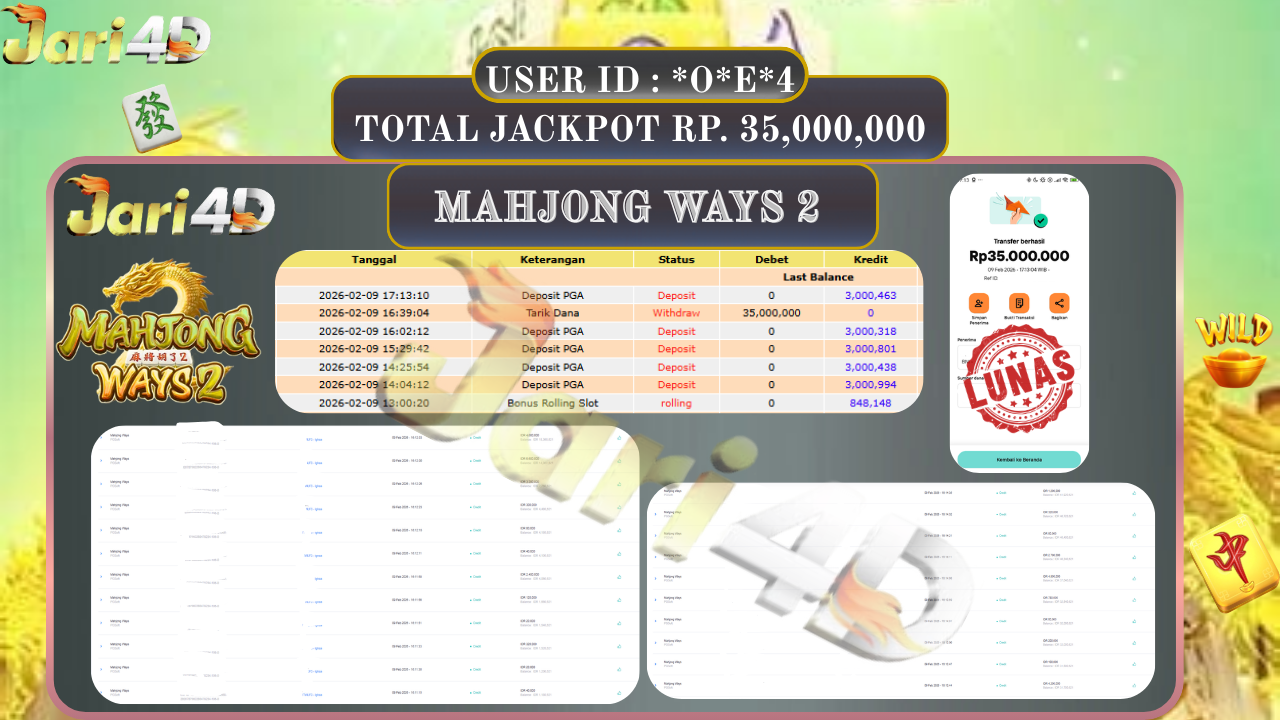 BUKTI WITHDRAW JARI4D KEMENANGAN JACKPOT MAHJONG WAYS 2 Rp.35.000.000,- LUNAS