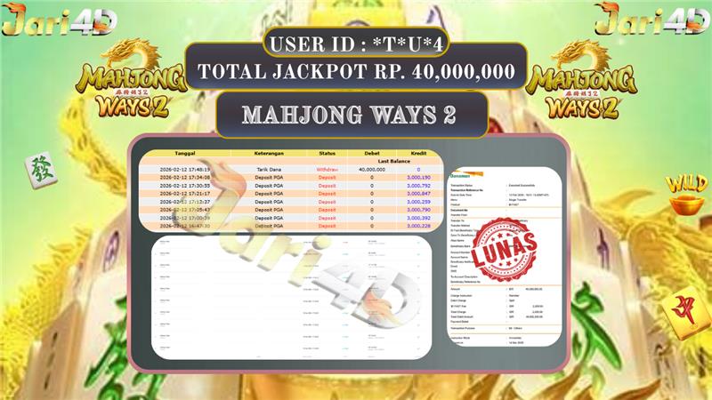 BUKTI WITHDRAW JARI4D KEMENANGAN JACKPOT MAHJONG WAYS 2 Rp.40.000.000,- LUNAS