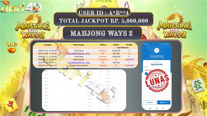 BUKTI WITHDRAW JARI4D KEMENANGAN JACKPOT MAHJONG WAYS 2 Rp.5.000.000,- LUNAS
