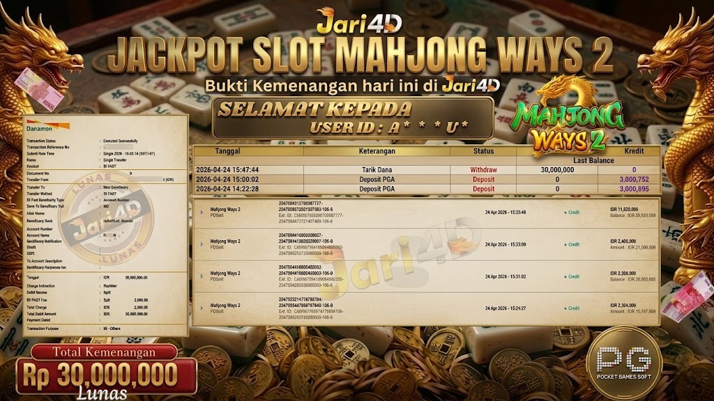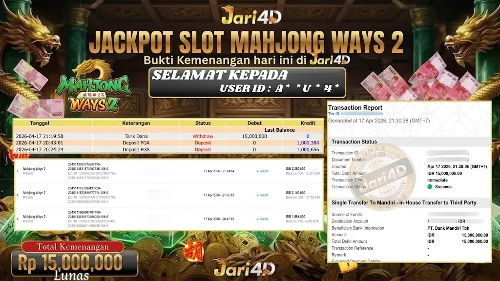 Bukti JP SLOT MAHJONG WAYS 2 Hari ini Di Situs JARI4D Sebesar Rp. 15,000,000,- Tuntas !! Read More »