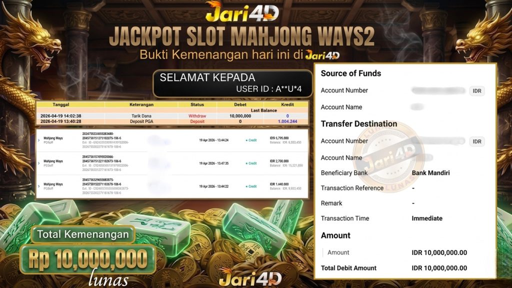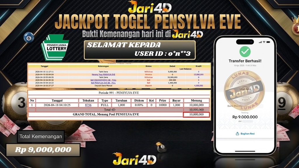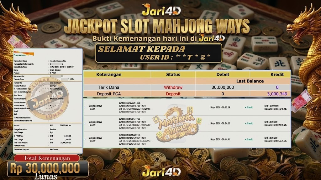 Bukti Withdraw Kemenangan Jackpot Di Situs Jari4D Jari4d Merupakan Situs Judi Online Togel , Slot , Livecasino Resmi Paling Terpercaya Sepanjang Tahun Sampai Saat Ini 2026. Jari4D Juga Merupakan Situs Online Dengan Licensi Kemenangan Jackpot Berapapun Pasti Di Bayar Tuntas !!! Tanpa Sedikit-Pun Basaa Basi Dari Pihak Web Dan Management Withdraw Jari4D. Kemenangan Berapapun […]