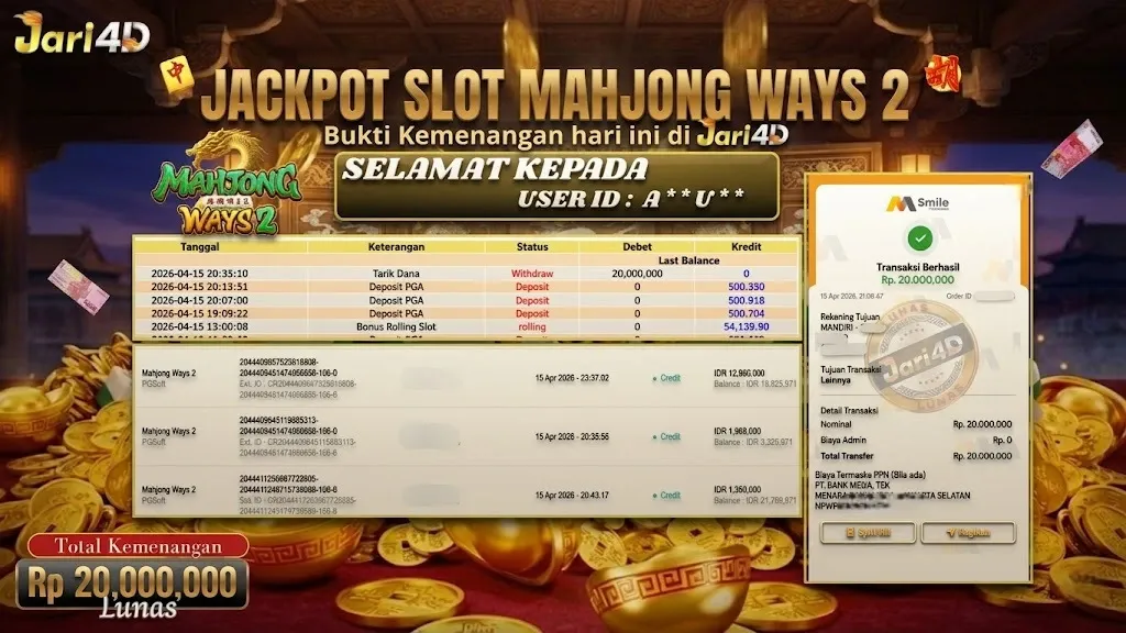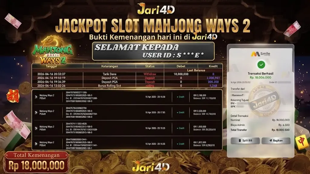 Bukti Withdraw Kemenangan Jackpot Di Situs Jari4D Jari4d Merupakan Situs Judi Online Togel , Slot , Livecasino Resmi Paling Terpercaya Sepanjang Tahun Sampai Saat Ini 2026. Jari4D Juga Merupakan Situs Online Dengan Licensi Kemenangan Jackpot Berapapun Pasti Di Bayar Tuntas !!! Tanpa Sedikit-Pun Basaa Basi Dari Pihak Web Dan Management Withdraw Jari4D. Kemenangan Berapapun […]