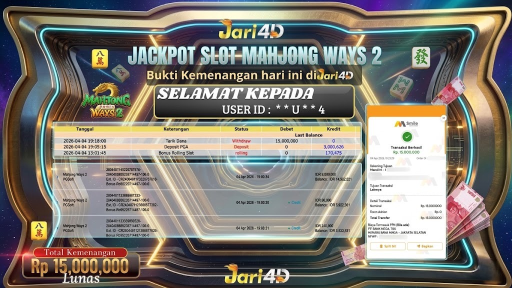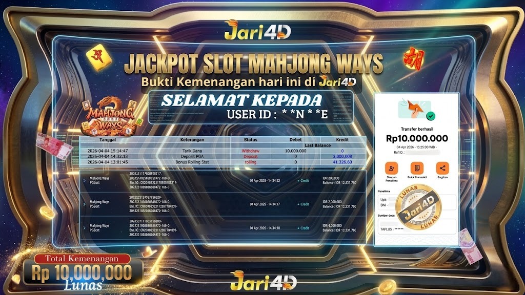 Bukti Withdraw Kemenangan Jackpot Di Situs Jari4D Jari4d Merupakan Situs Judi Online Togel , Slot , Livecasino Resmi Paling Terpercaya Sepanjang Tahun Sampai Saat Ini 2026. Jari4D Juga Merupakan Situs Online Dengan Licensi Kemenangan Jackpot Berapapun Pasti Di Bayar Tuntas !!! Tanpa Sedikit-Pun Basaa Basi Dari Pihak Web Dan Management Withdraw Jari4D. Kemenangan Berapapun […]