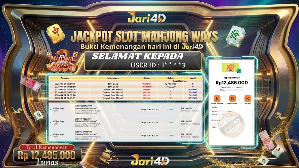 Bukti JP SLOT MAHJONG WAYS Hari ini Di Situs JARI4D Sebesar Rp. 12,485,000,- Tuntas !!