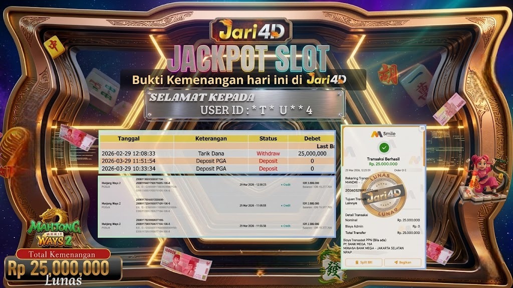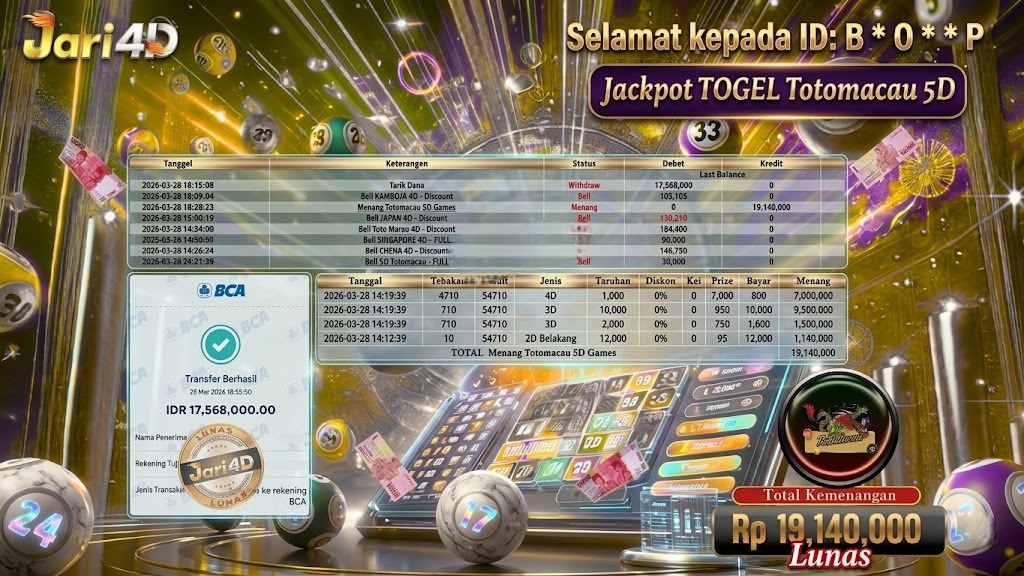 Bukti Withdraw Kemenangan Jackpot Di Situs Jari4D Jari4d Merupakan Situs Judi Online Togel , Slot , Livecasino Resmi Paling Terpercaya Sepanjang Tahun Sampai Saat Ini 2026. Jari4D Juga Merupakan Situs Online Dengan Licensi Kemenangan Jackpot Berapapun Pasti Di Bayar Tuntas !!! Tanpa Sedikit-Pun Basaa Basi Dari Pihak Web Dan Management Withdraw Jari4D. Kemenangan Berapapun […]