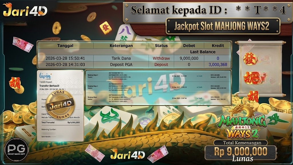 Bukti JP SLOT MAHJONG WAYS Hari ini Di Situs JARI4D Sebesar Rp. 35,000,000,- Tuntas !! Read More »
