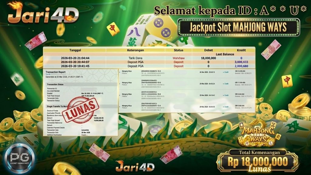 Bukti JP MAHJONG WAYS Hari ini Di Situs JARI4D Sebesar Rp. 15,000,000,- Tuntas !! Read More »
